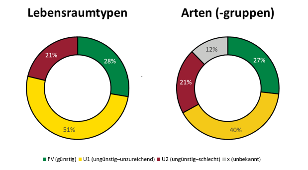 Das Landesamt für Umwelt, Landwirtschaft und Geologie hat im Auftrag des Sächsischen Staatsministeriums für Umwelt und Landwirtschaft die Daten über den Zustand der FFH-Lebensräume (FFH-LRT) bzw. -Arten für den Freistaat zusammengestellt und bewertet. Die Ergebnisse sind als Übersichtsgrafiken verfügbar. Detailinformationen zu den einzelnen Arten und Lebensraumtypen sind tabellarisch aufbereitet. Dank des bundesweiten und einheitlichen Monitoringverfahrens ist es möglich, die Berichte ab dem Zeitraum 2007-2012 miteinander zu vergleichen. Zu den Veränderungen gibt ein Hintergrundpapier weitergehende Erläuterungen.